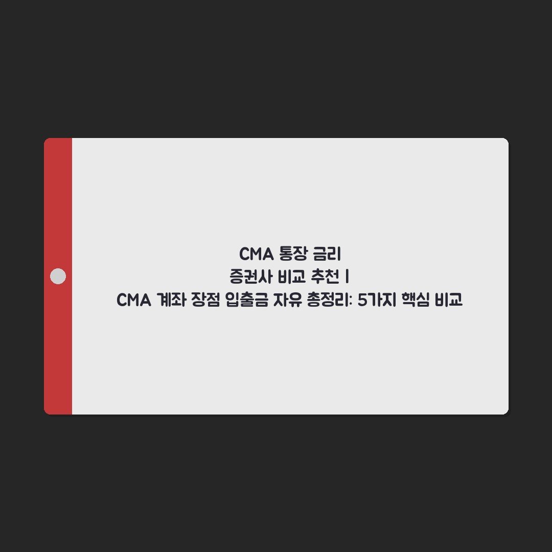 ## 메타 설명 (80-100자) CMA 통장 금리, 어떤 증권사가 가장 높을까요? CMA 계좌 장점과 입출금 자유로운 상품을 5가지 핵심 기준으로 비교 추천해 드립니다. 지금 바로 확인하고 현명한 투자하세요!