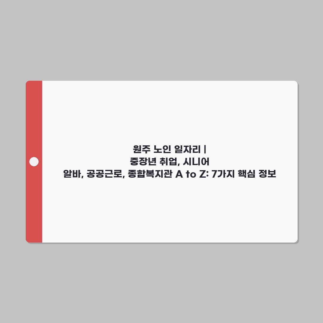 ## 메타 설명 원주 노인 일자리, 중장년 취업, 시니어 알바, 공공근로 정보 총정리! 종합복지관 활용법까지 A to Z, 7가지 핵심 정보를 통해 성공적인 취업 기회를 잡으세요.